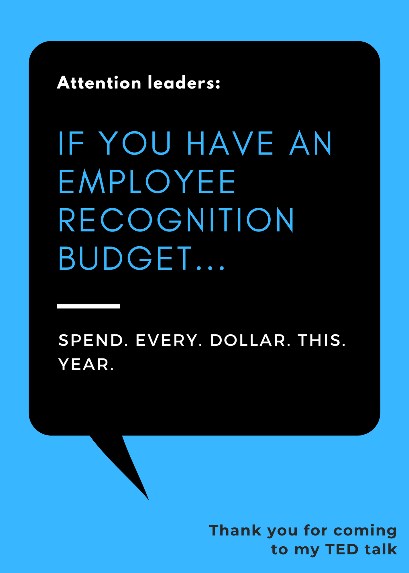 If your organization has a budget for ‘employee recognition’ USE. EVERY. DOLLAR. THIS. YEAR.
